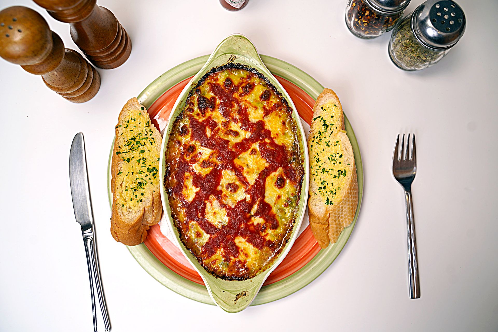 • Lasagne Bolognese (Sheets of pasta with layers of minced Meat Sauce, topped with cheese and Baked)